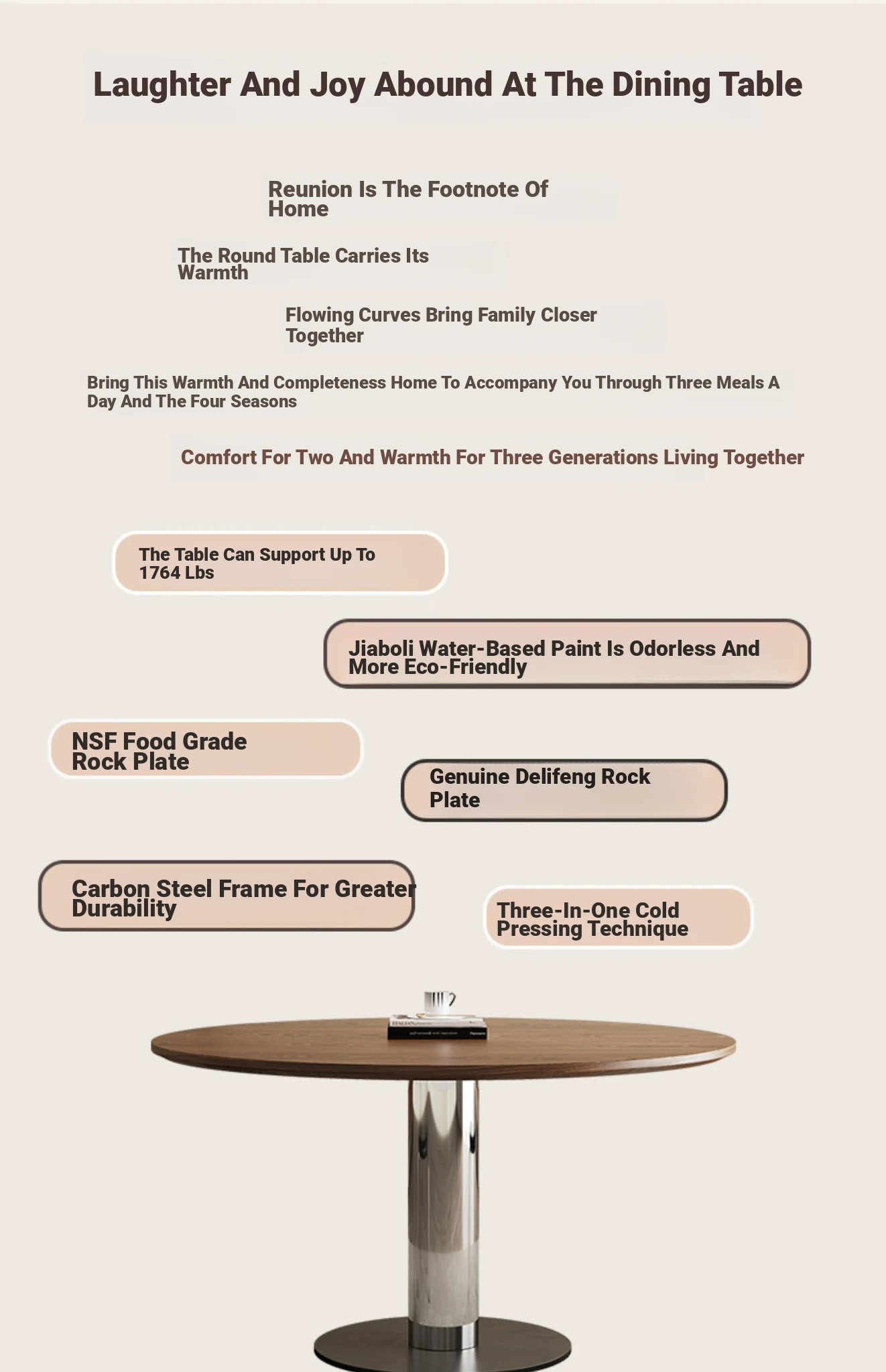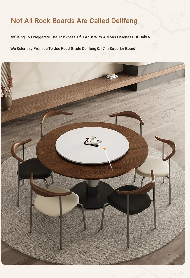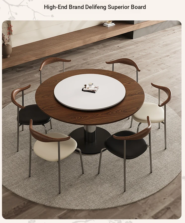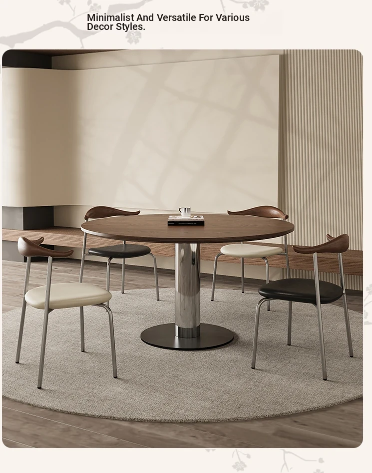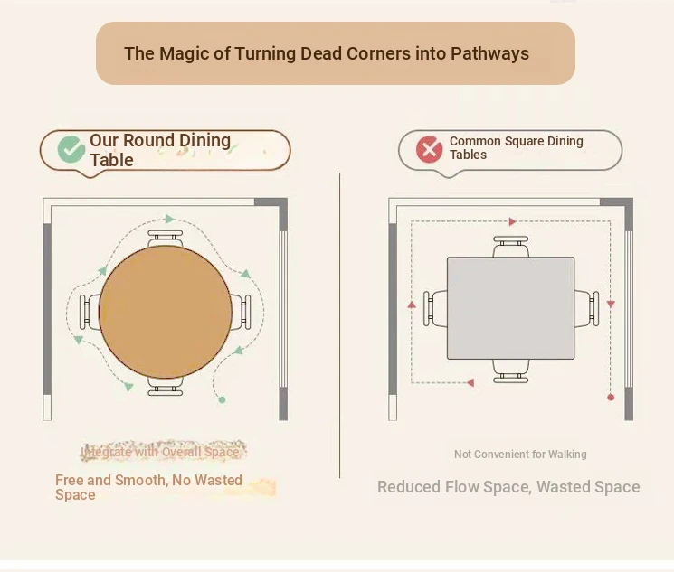 Vintage Solid Wood Round Dining Table for Small Spaces – Creamy Walnut Finish, Perfect for Cozy Homes and Stylish Dining Experience