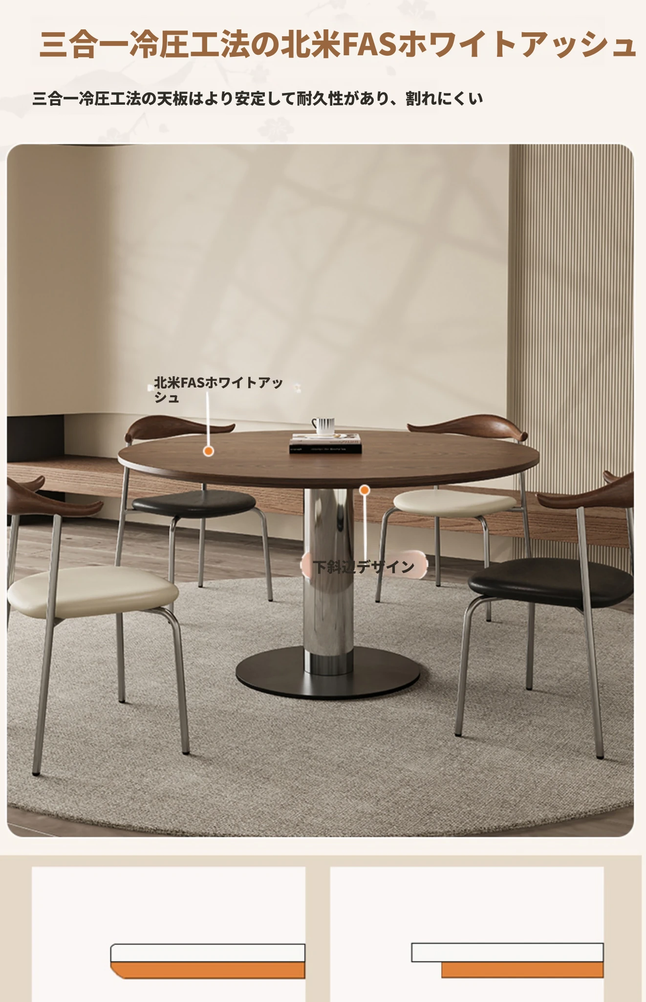 1.2メートル無垢材円卓【ホワイトアッシュ直木目】