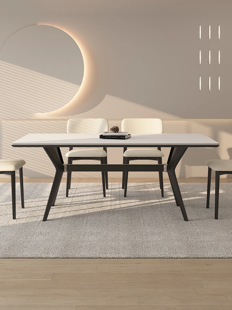 イノホワイトバーチ無垢材の高級イタリアンミニマリズム岩板ダイニングテーブル&チェアセット - 輸入原木使用、洗練されたデザインでおしゃれな食卓を演出!